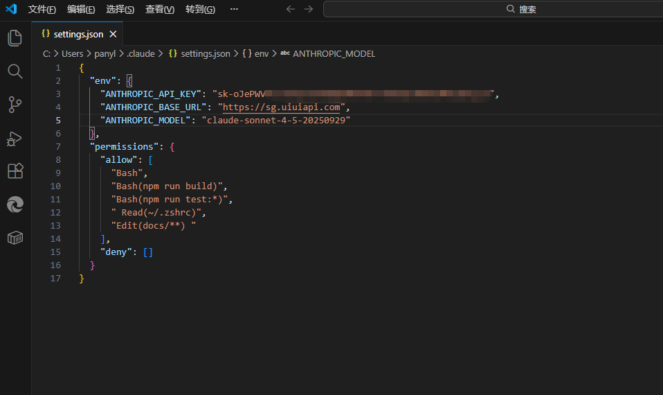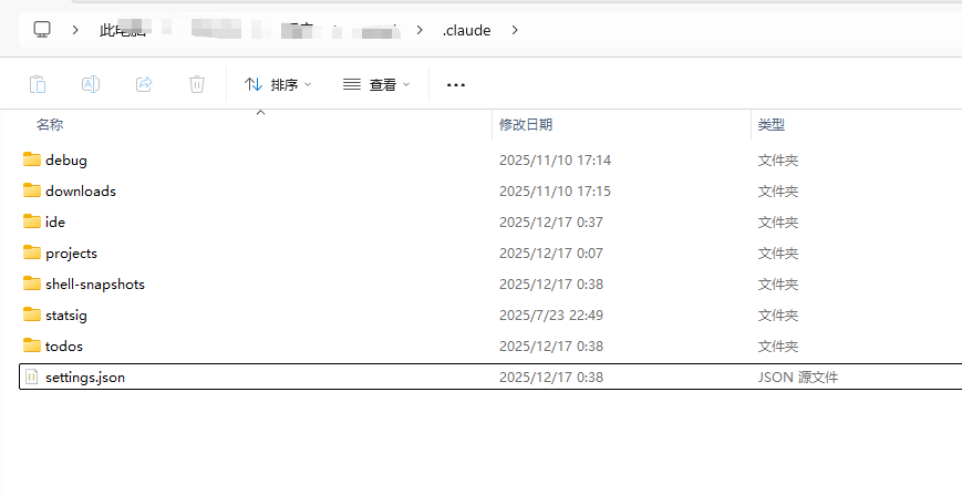 1.找到claude的文件夹里的settings.json文件,打开去编辑。(如果没有可以手动创建settings.json文件)