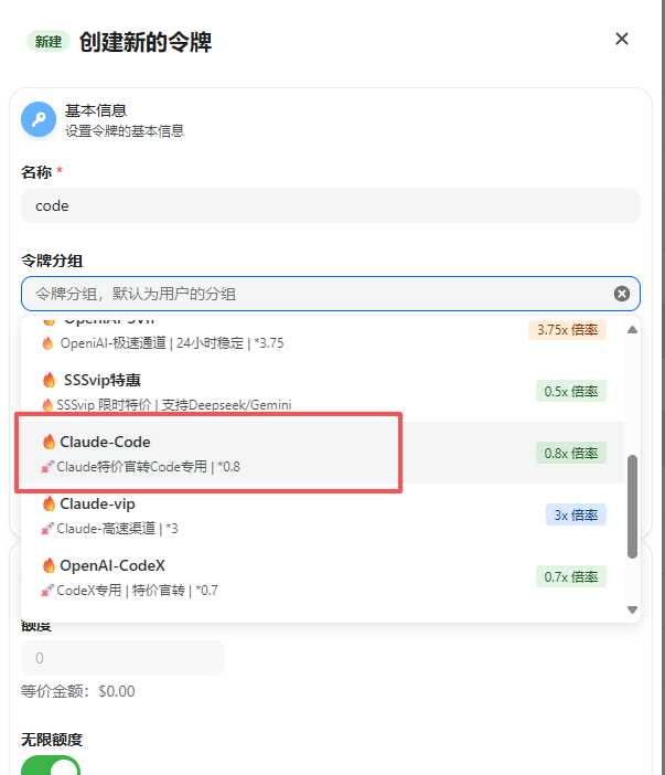 - 你需要创建一个支持专用的“Claude-Code”的令牌。