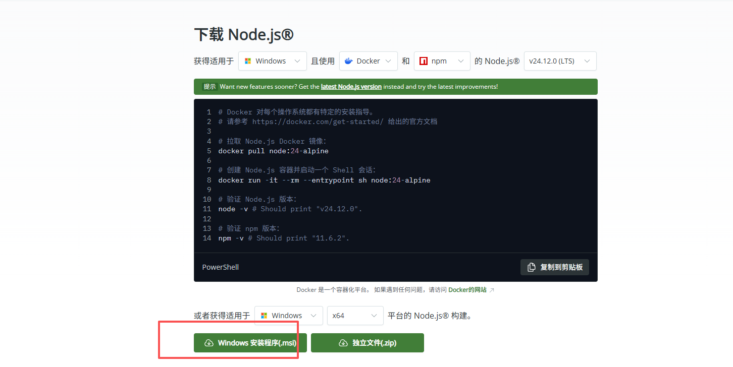 - 没有安装? 去 Node.js 官网下载 LTS(长期支持)版本,一路“Next”安装即可。