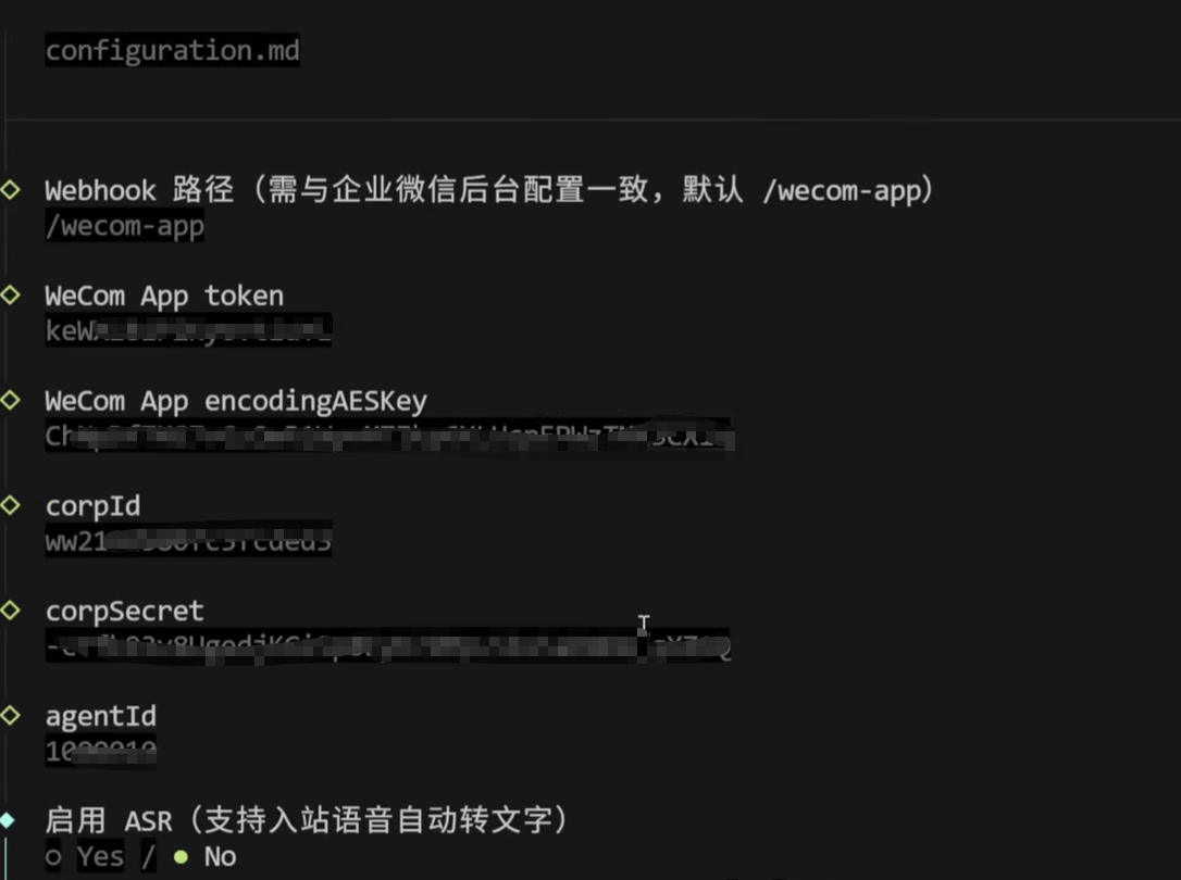 - Secret (应用秘钥):必须在企业微信的手机 APP 端查看。