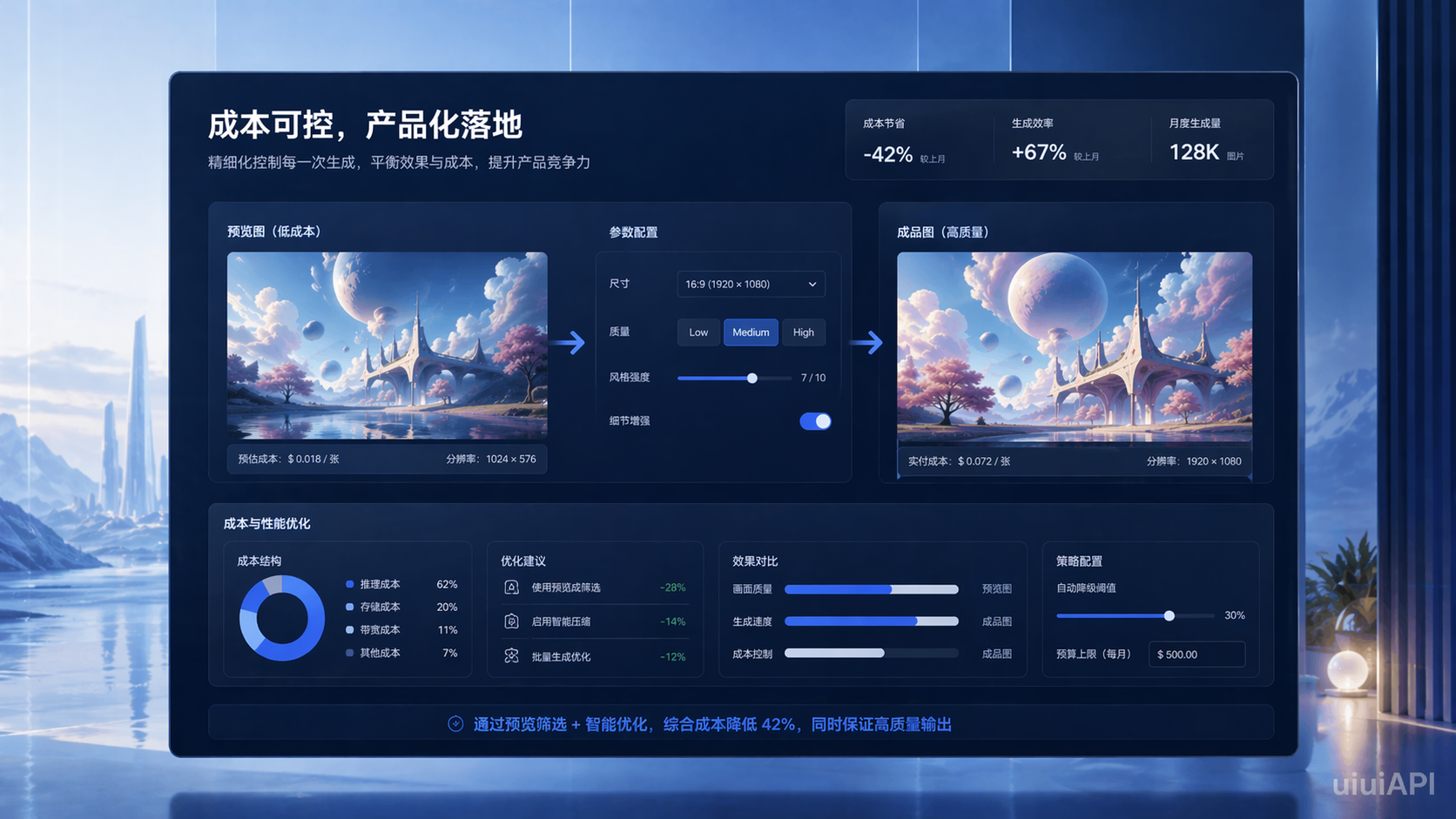 虽然 gpt-image-2 支持更高分辨率,但官方也提到方图通常更快,且质量档位会影响时延。很多业务更适合先出预览,再导出成片。